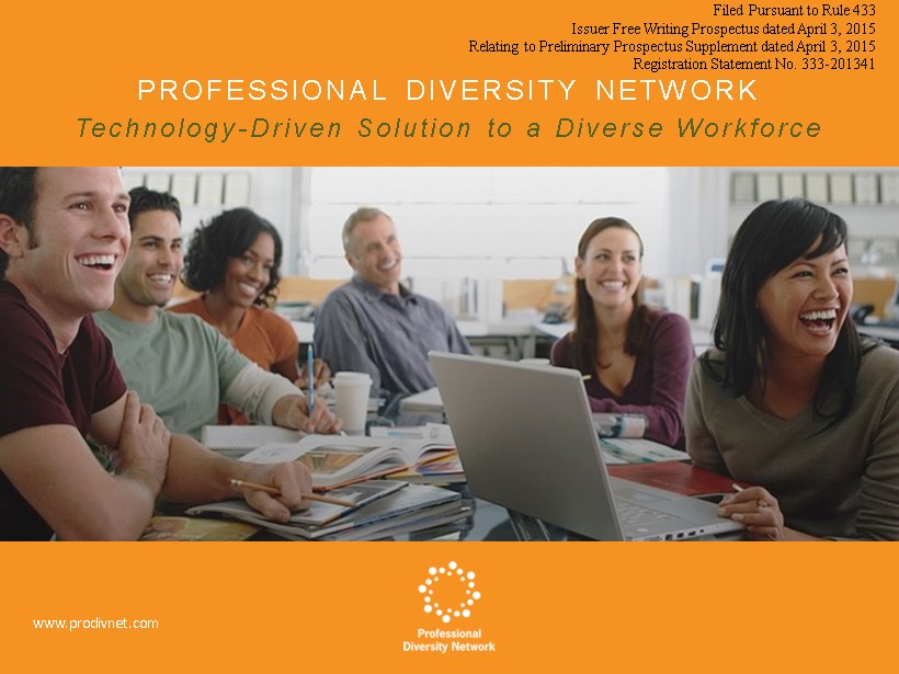 PROFESSIONAL DIVERSITY NETWORK Technology - Driven Solution to a Diverse Workforce www.prodivnet.com Filed Pursuant to Rule 433 Issuer Free Writing Prospectus dated April 3, 2015 Relating to Preliminary Prospectus Supplement dated April 3, 2015 Registration Statement No. 333 - 201341