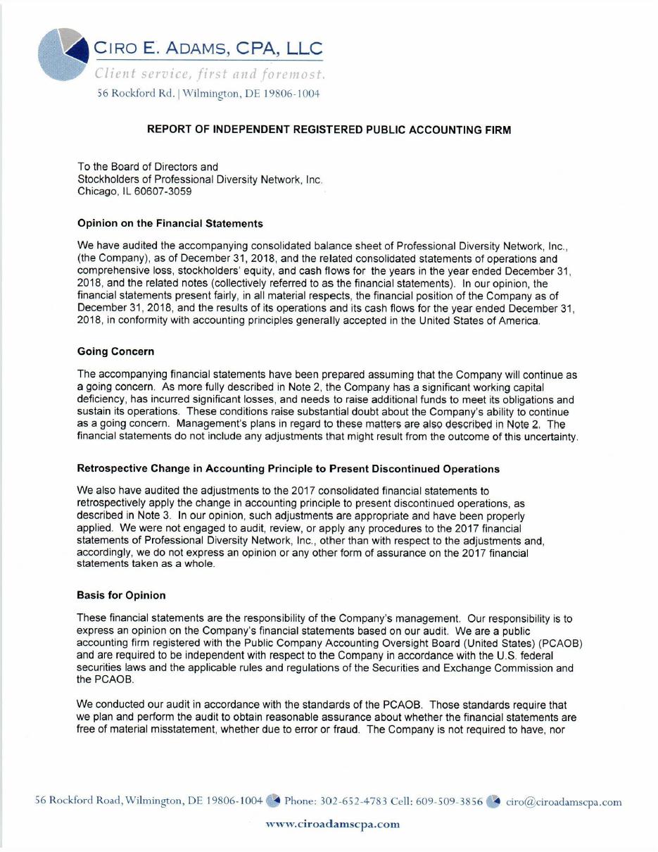 PROFESSIONAL DIVERSITY NETWORK, INC.