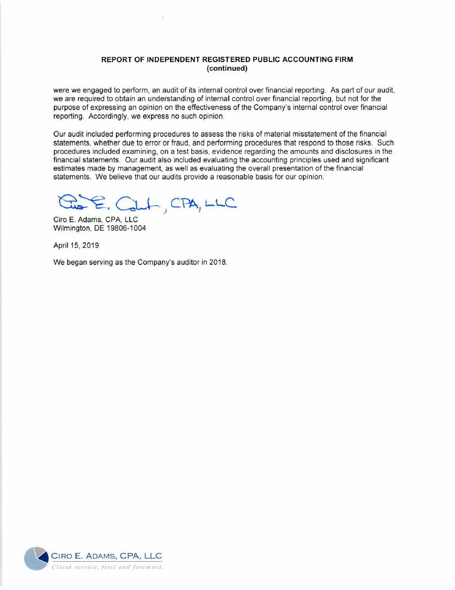 Pursuant to the requirements of Section 13 or 15(d) of the Securities Exchange Act of 1934, the registrant has duly caused this report to be signed on its behalf by the undersigned, thereunto duly authorized, on April 15, 2019.